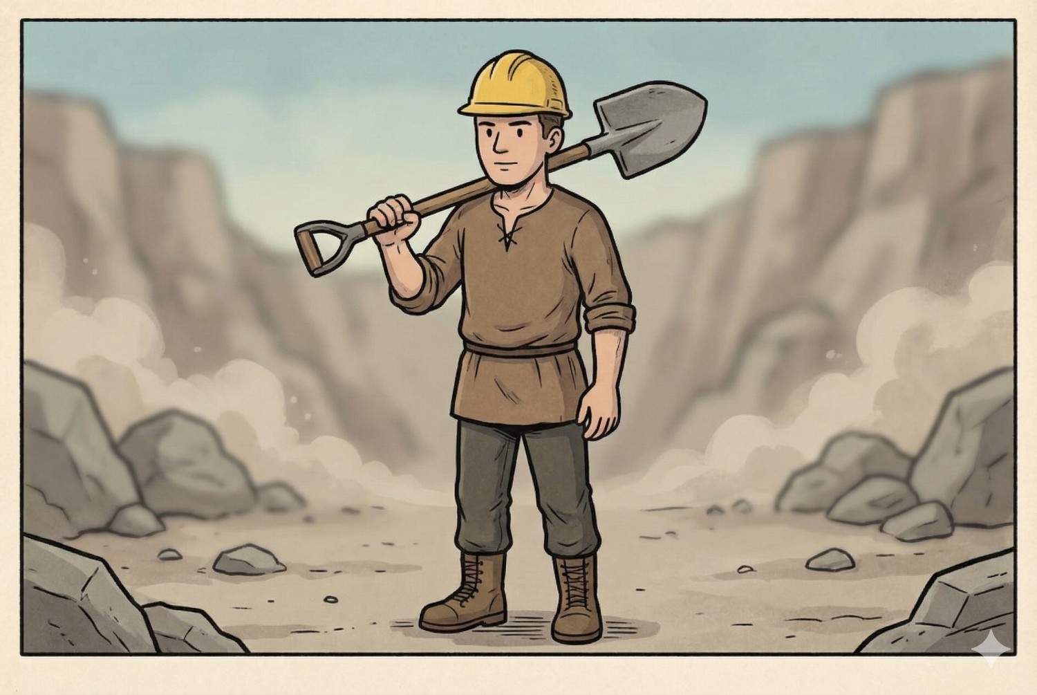 He grins and shouts: “This is too easy! I’m a one-man quarry!” And for a moment, everything seems perfect.