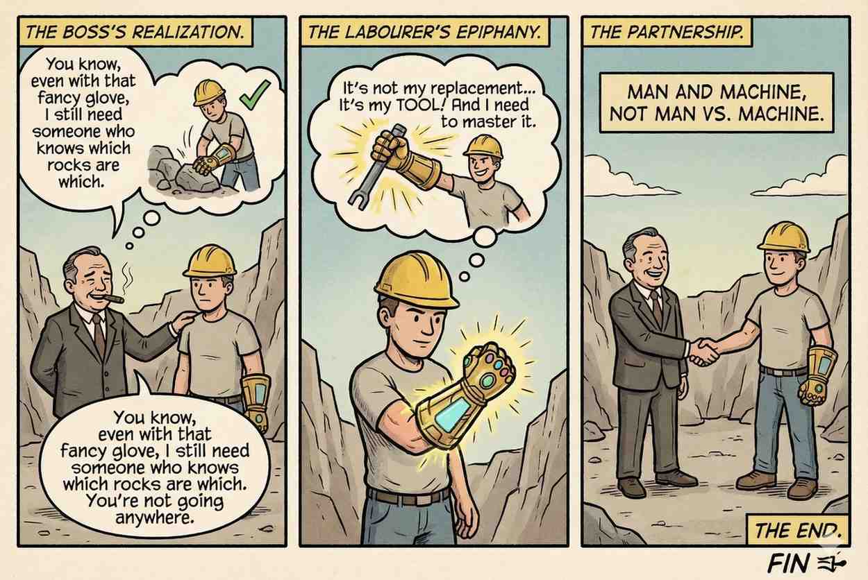 The story is not about man vs AI. It is about man with AI. Tools change the speed of work. They do not replace the people who understand the work. Steam engines didn’t eliminate engineers. Compilers didn’t eliminate programmers.